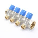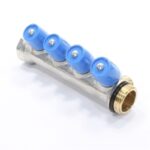Коллектор General Fittings 6200 1″х1/2″, 4вых., c клапанами, латунь никелир., синий 6200E7N1004B4A