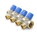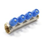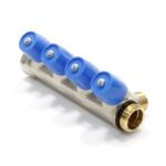 Коллектор General Fittings 6200 3/4″х1/2″, 4вых., c клапанами, латунь никелир., синий 6200E7N0504B4A