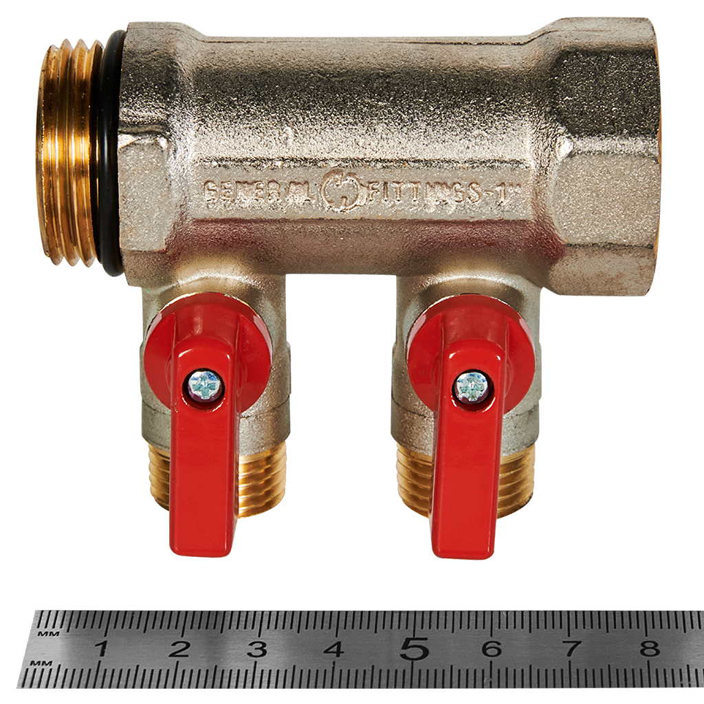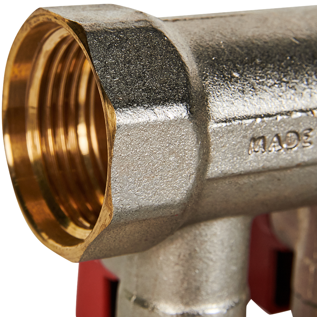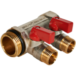 SMB 6210 011202 STOUT Коллектор с шаровыми кранами 1 , 2 отвода 1/2(красные ручки) (6200R6N1004R2B)