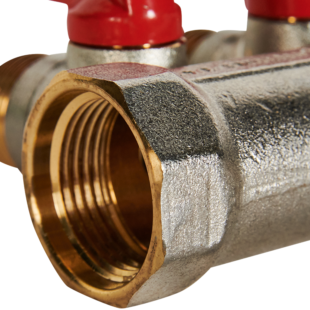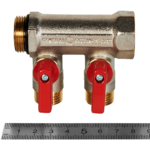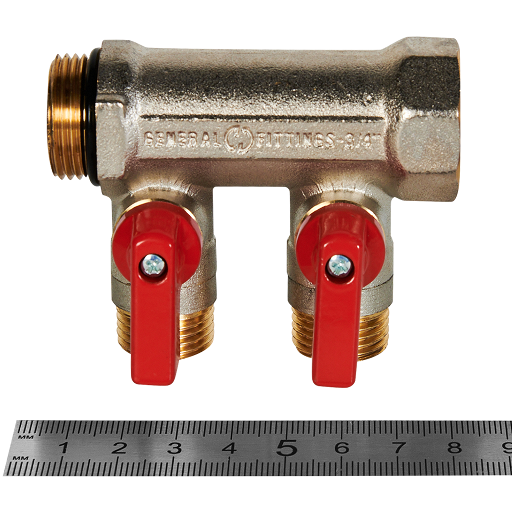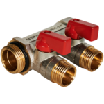SMB 6210 341202 STOUT Коллектор с шаровыми кранами 3/4 , 2 отвода 1/2(красные ручки) (6200R6N0504R2B)