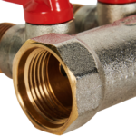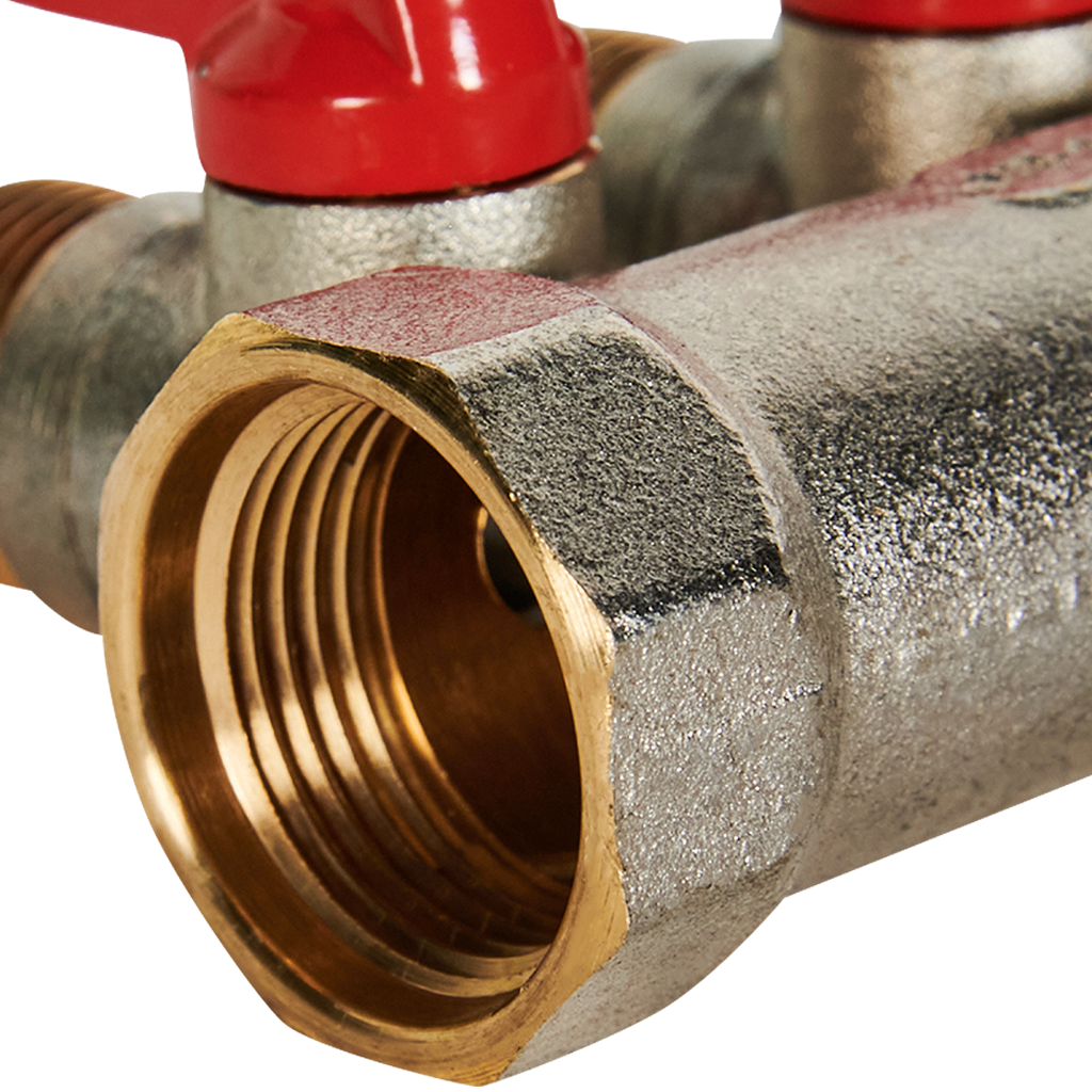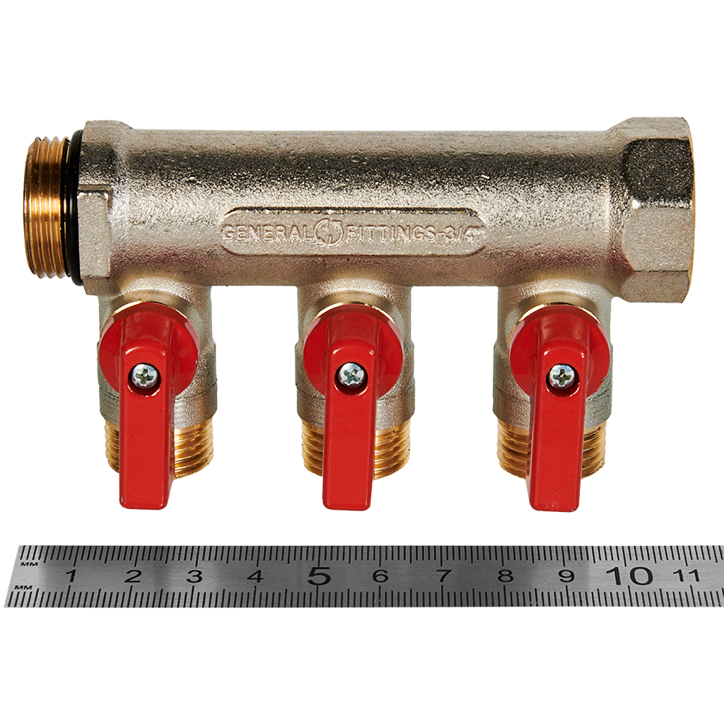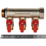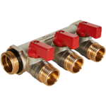 SMB 6210 341203 STOUT Коллектор с шаровыми кранами 3/4 , 3 отвода 1/2(красные ручки) (6200R6N0504R3B)