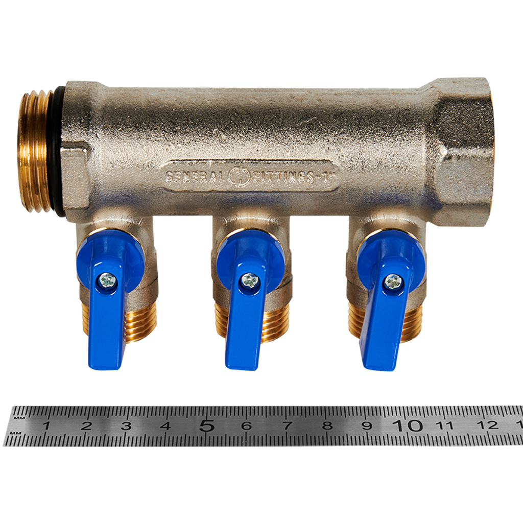 SMB 6211 011203 STOUT Коллектор с шаровыми кранами 1 , 3 отвода 1/2(синие ручки) (6200R6N1004B3B)