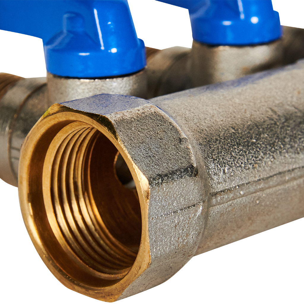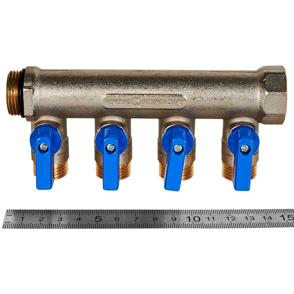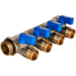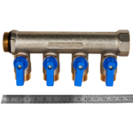 SMB 6211 341204 STOUT Коллектор с шаровыми кранами 3/4 , 4 отвода 1/2(синие ручки) (6200R6N0504B4B)