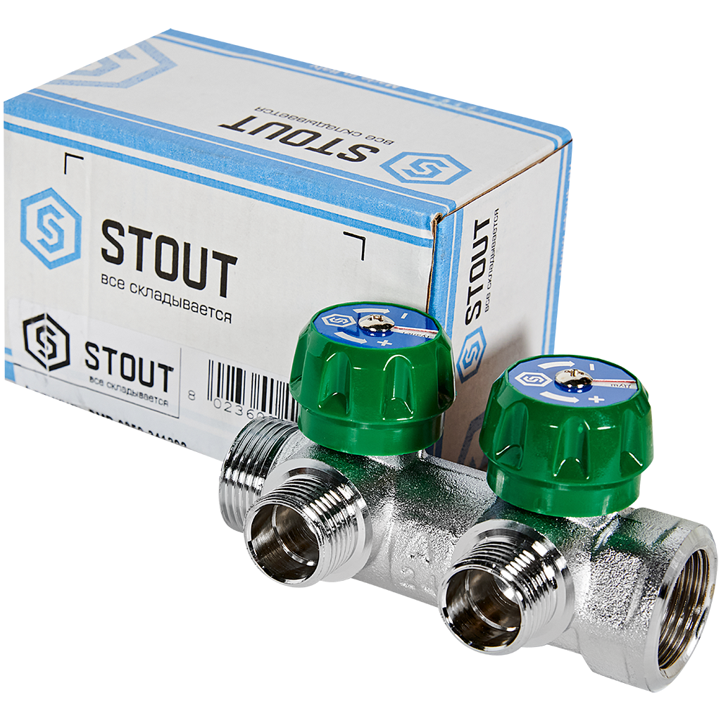 SMB-6850-341202 STOUT Коллектор регулирующий 3/4 , 2 отвода 1/2