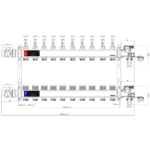 Выходы обратного коллектора блока оборудованы регулировочными клапанами с возможностью установки электротермических сервоприводов, подающего – настроечными клапанами с расходомерами (ротаметрами).