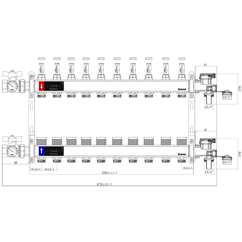 Условный диаметр коллекторов – 1″. Резьба выходов – наружная, 3/4″.