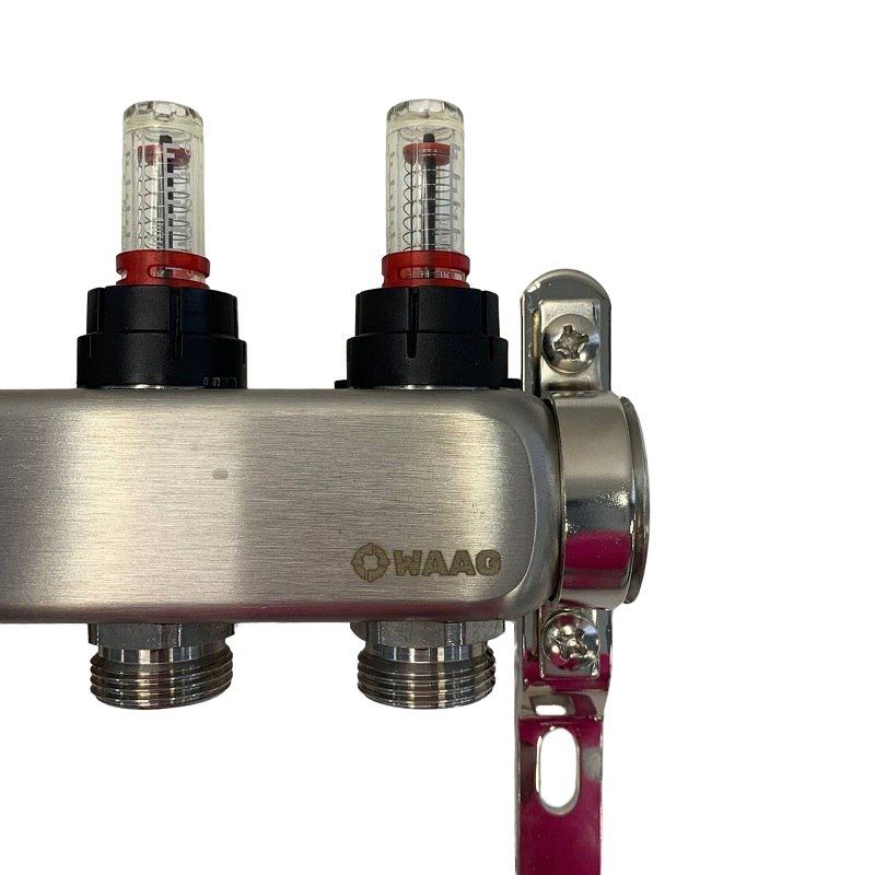 Коллектор WAAG 1″х3/4″, 12вых., c клапанами, с расходомерами, сталь нерж. WG.589.0612