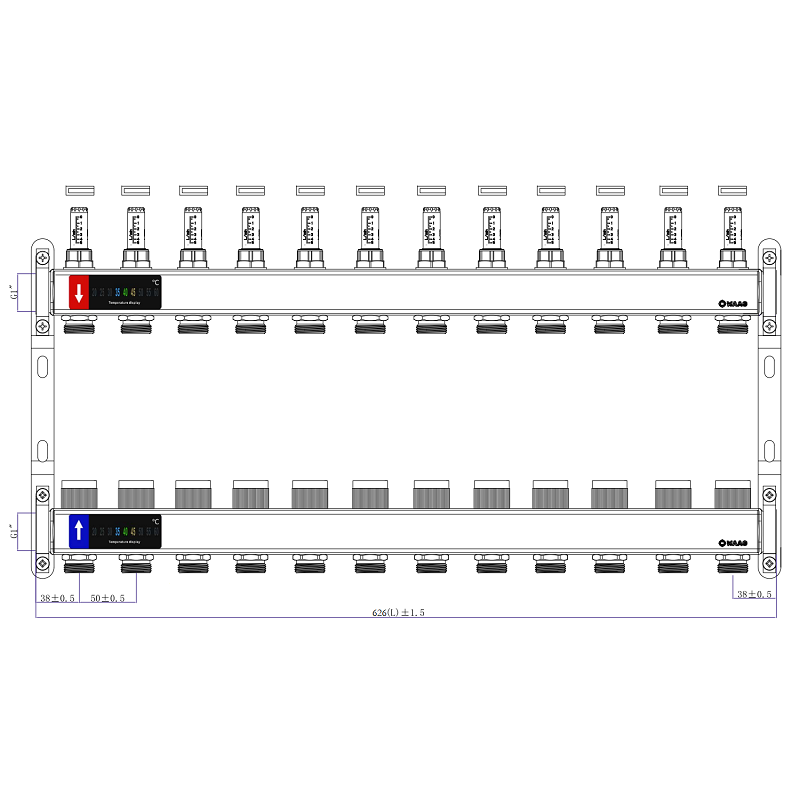 Выходы обратного коллектора блока оборудованы регулировочными клапанами с возможностью установки электротермических сервоприводов, подающего – настроечными клапанами с расходомерами (ротаметрами).