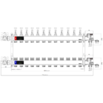 Выходы обратного коллектора блока оборудованы регулировочными клапанами с возможностью установки электротермических сервоприводов, подающего – настроечными клапанами с расходомерами (ротаметрами).