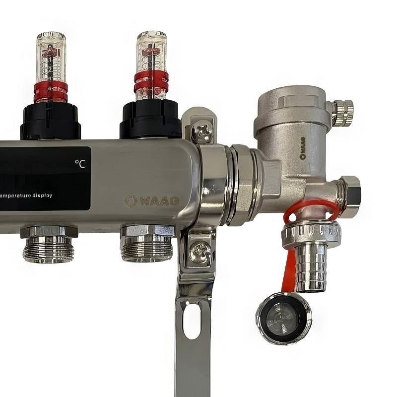 Коллектор WAAG 1″х3/4″, 12вых., c клапанами, с расходомерами, сталь нерж., в сборе WG.589.0612.F