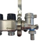 Коллекторный блок из нержавеющей стали служит для распределения потоков по контурам теплого пола, радиаторного отопления, прочих климатических систем, где в качестве теплоносителя используется вода либо незамерзающие растворы гликоля с максимальной рабочей температурой 90 °С, рабочим давлением до 9 бар.