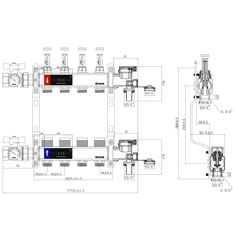 Условный диаметр коллекторов – 1″. Резьба выходов – наружная, 3/4″.