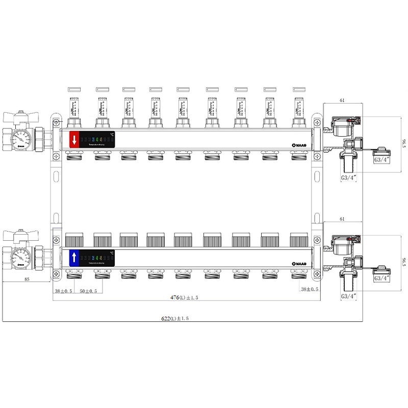 Условный диаметр коллекторов – 1″. Резьба выходов – наружная, 3/4″.