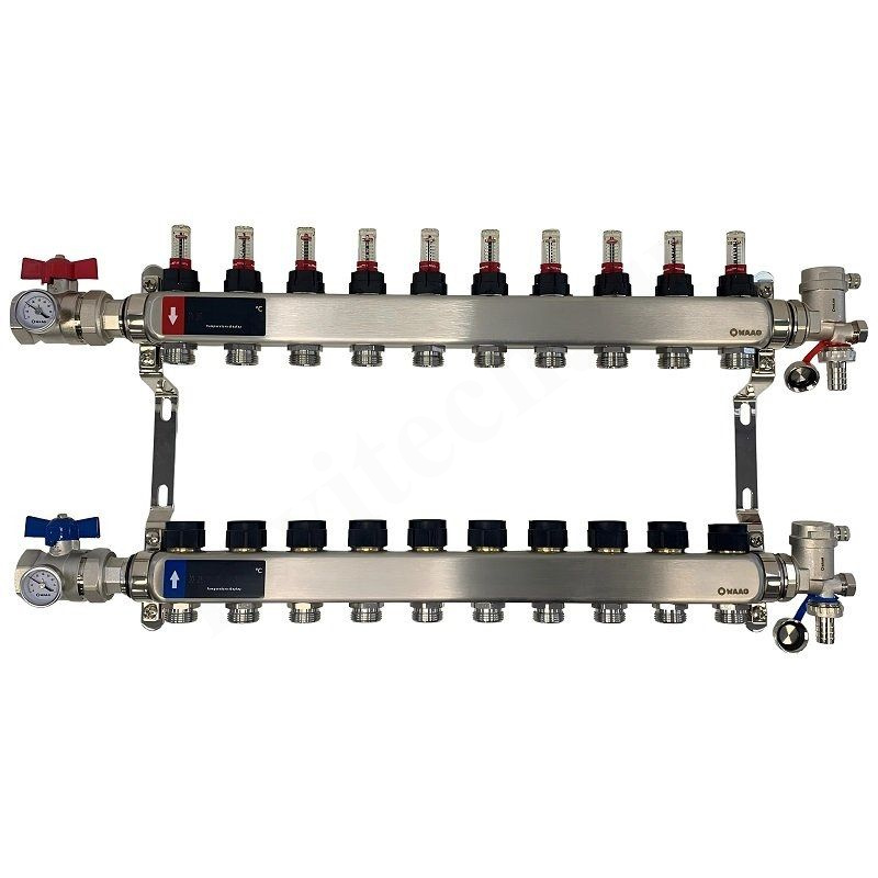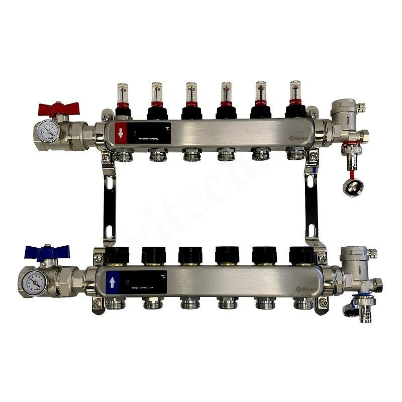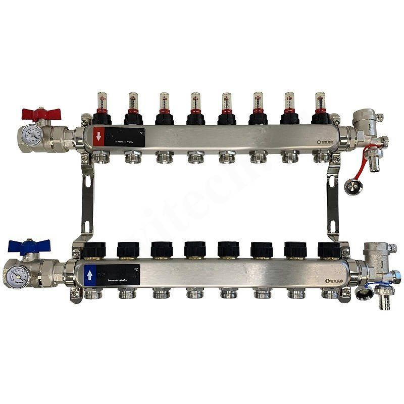 Коллекторная группа предназначена для распределения и регулирования расхода теплоносителя в отдельных контурах напольных систем отопления и охлаждения. Она может применяться только с теплоносителем, который соответствует требованиям VDI 2035.