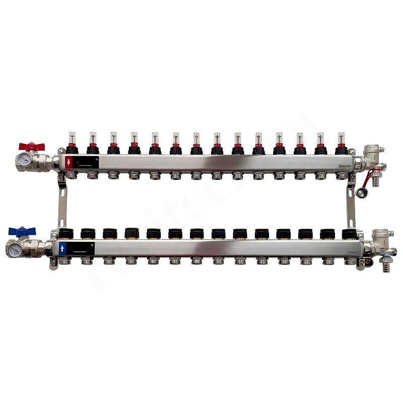 – Обратный коллектор: контрольно-регулирующие и запорные клапаны под сервопривод M30x1,5.