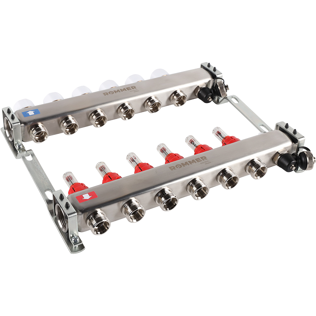RMS-1201-000006 ROMMER Коллектор из нержавеющей стали с расходомерами, с клапаном вып. воздуха и сливом 6 вых.
