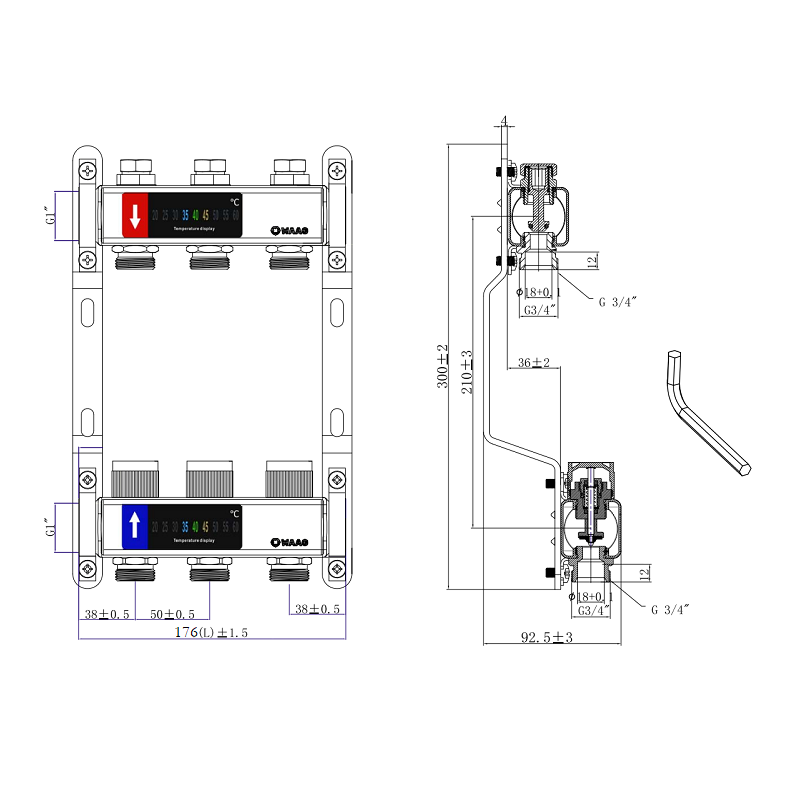 Выходы обратного коллектора блока оборудованы регулировочными клапанами с возможностью установки электротермических сервоприводов, подающего – настроечными микрометрическими клапанами.
