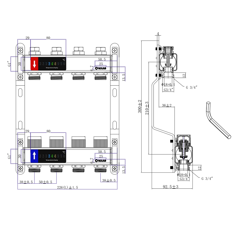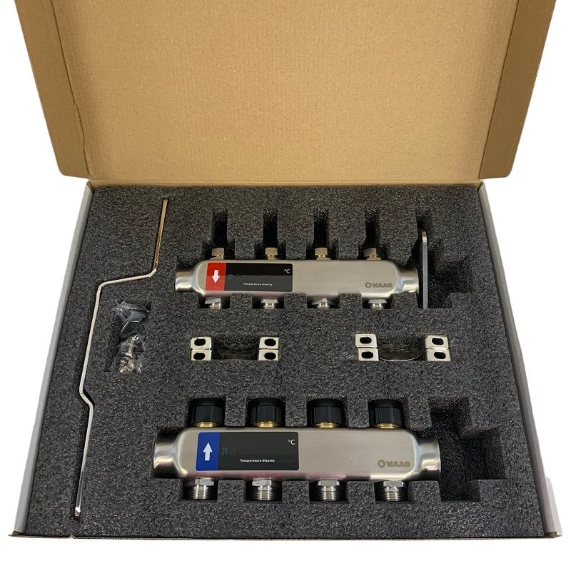Выходы обратного коллектора блока оборудованы регулировочными клапанами с возможностью установки электротермических сервоприводов, подающего – настроечными микрометрическими клапанами.