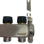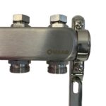 Коллекторный блок из нержавеющей стали служит для распределения потоков по контурам теплого пола, радиаторного отопления, прочих климатических систем, где в качестве теплоносителя используется вода либо незамерзающие растворы гликоля с максимальной рабочей температурой 90 °С, рабочим давлением до 9 бар.