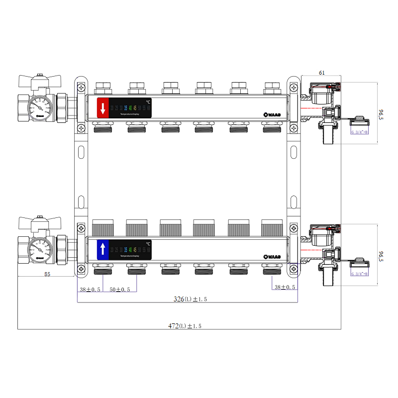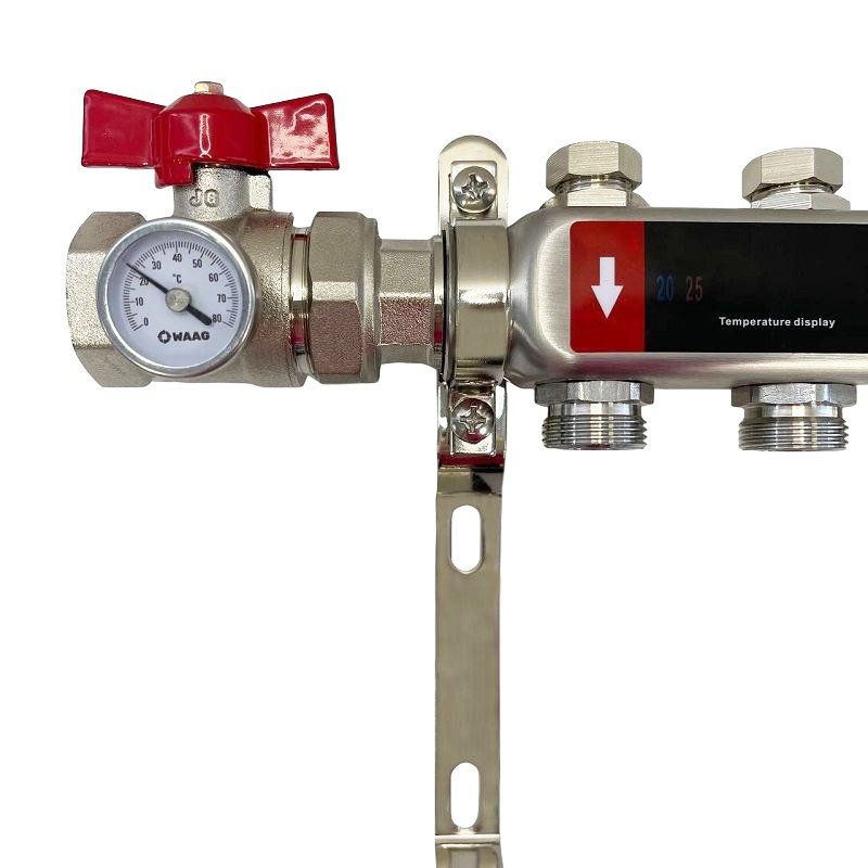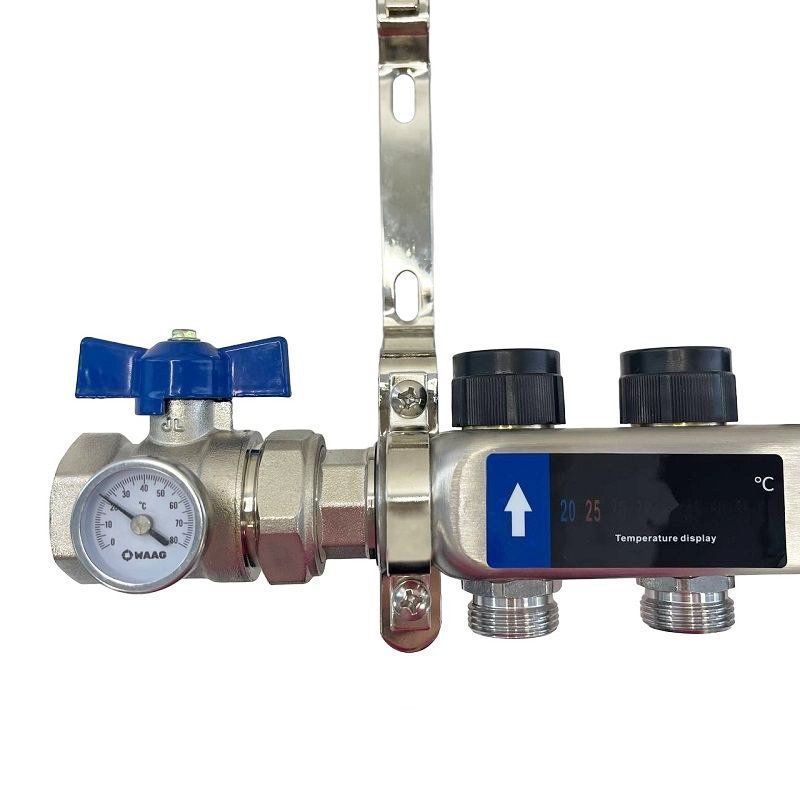 Выходы обратного коллектора блока оборудованы регулировочными клапанами с возможностью установки электротермических сервоприводов, подающего – настроечными микрометрическими клапанами.