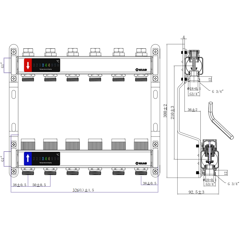 Выходы обратного коллектора блока оборудованы регулировочными клапанами с возможностью установки электротермических сервоприводов, подающего – настроечными микрометрическими клапанами.