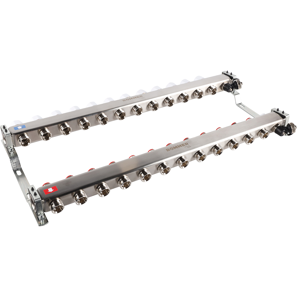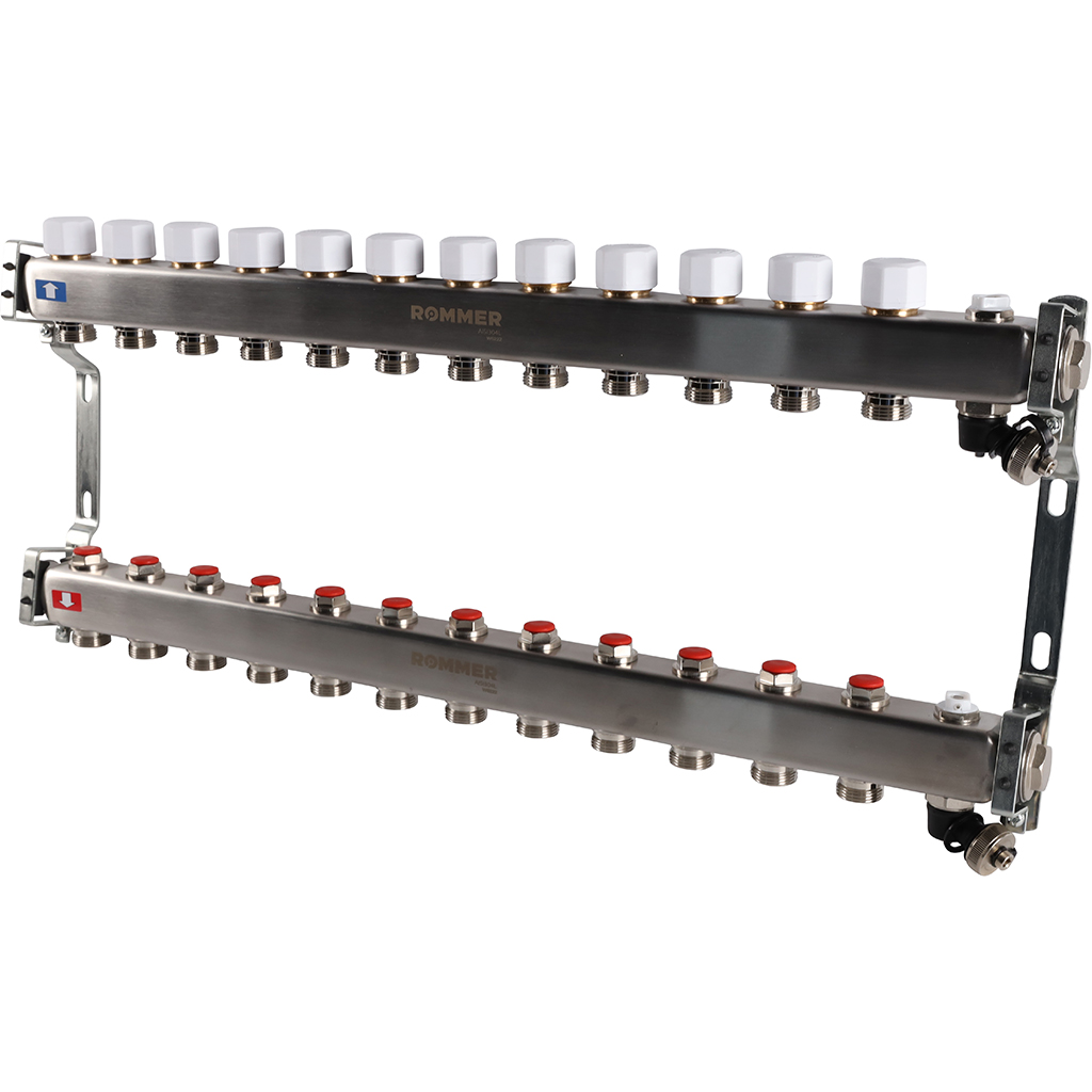 ROMMER Коллектор из нержавеющей стали без расходомеров, с клапаном вып. воздуха и сливом 12 вых. RMS-3201-000012