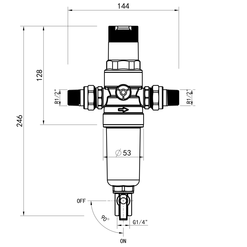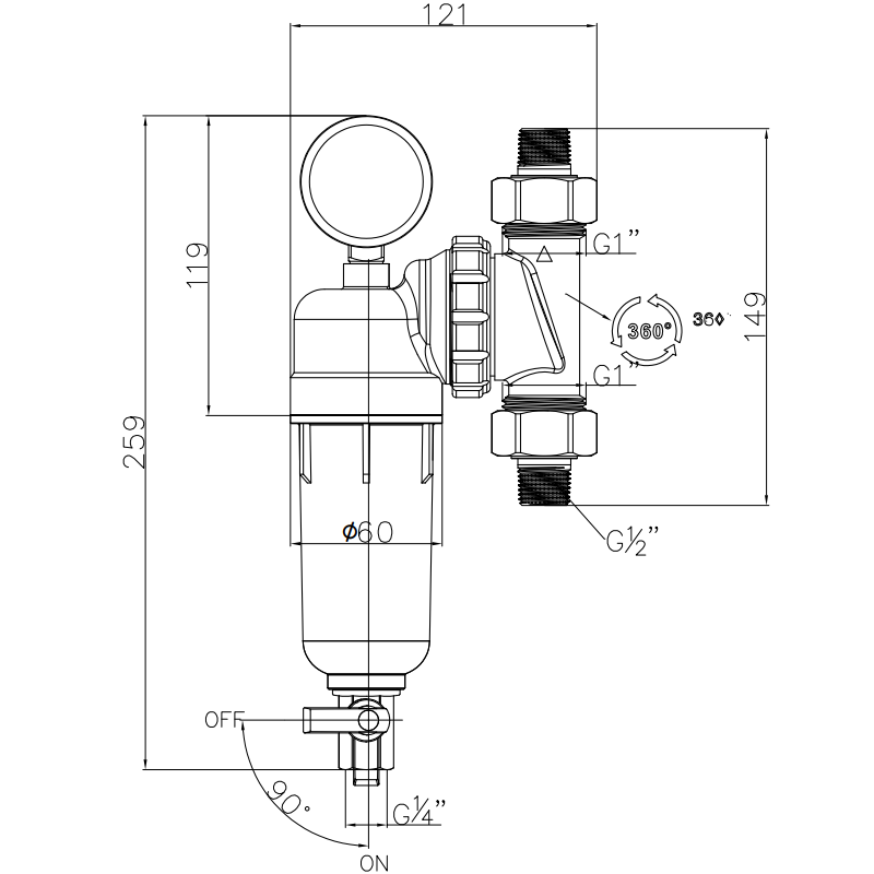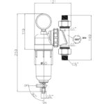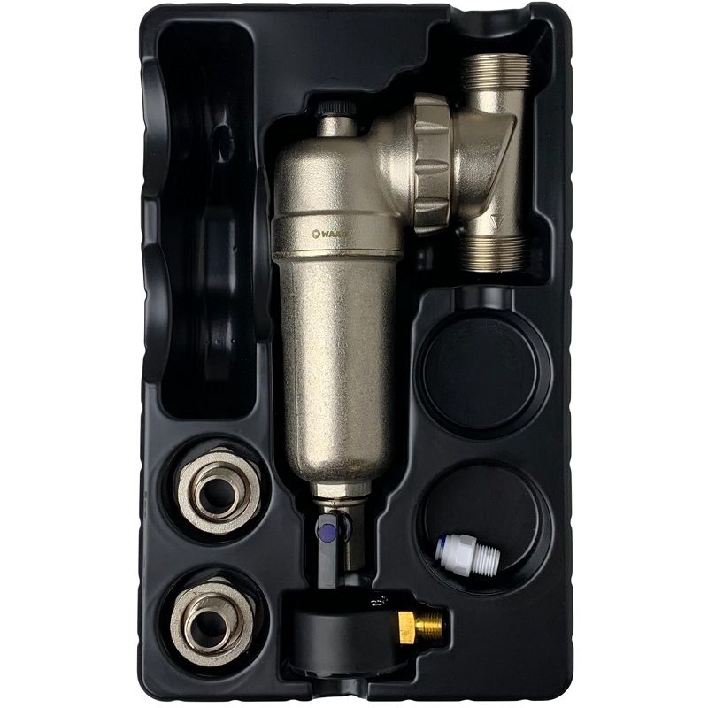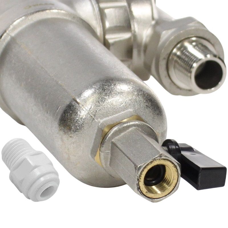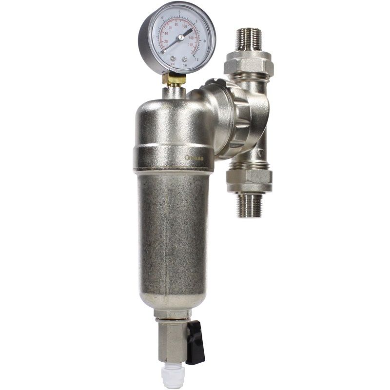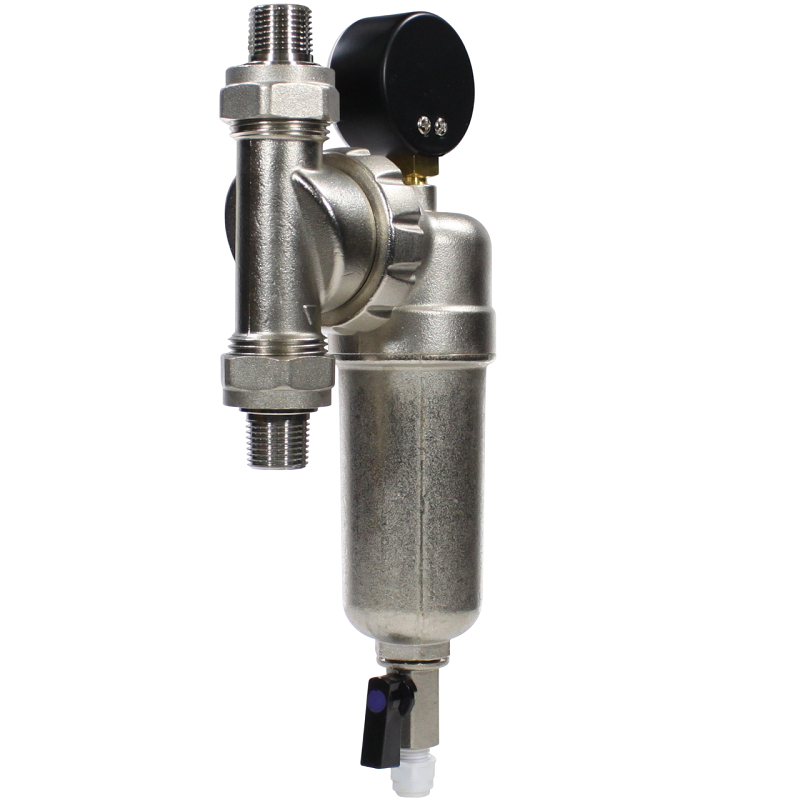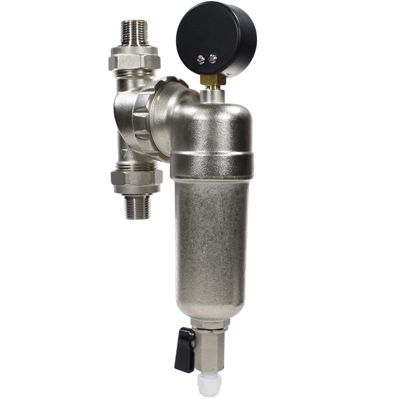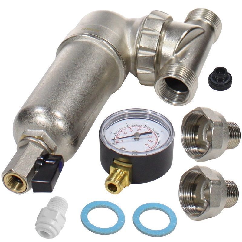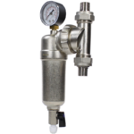 Универсальный фильтр механической очистки холодной и горячей воды в системах питьевого и хозяйственного назначения (квартиры, загородные дома). Обеспечивает удаление мелких нерастворимых частиц, таких как ил, песок, ржавчина, окалина, предотвращает засорение бытовых приборов и нарушение работы трубопровода. Манометр, входящий в комплект фильтра, даёт возможность контролировать давление в системе. Для осуществления промывки необходимо открыть сливной кран, выпускающий скопившиеся на дне чаши фильтра примеси; подача воды при этом не прерывается.