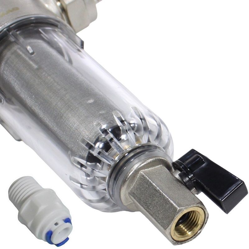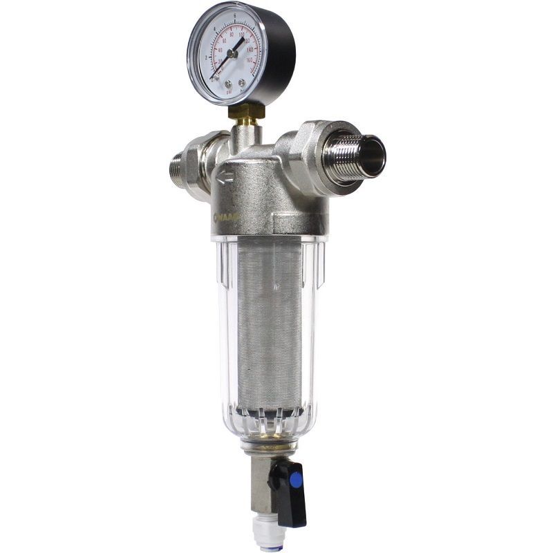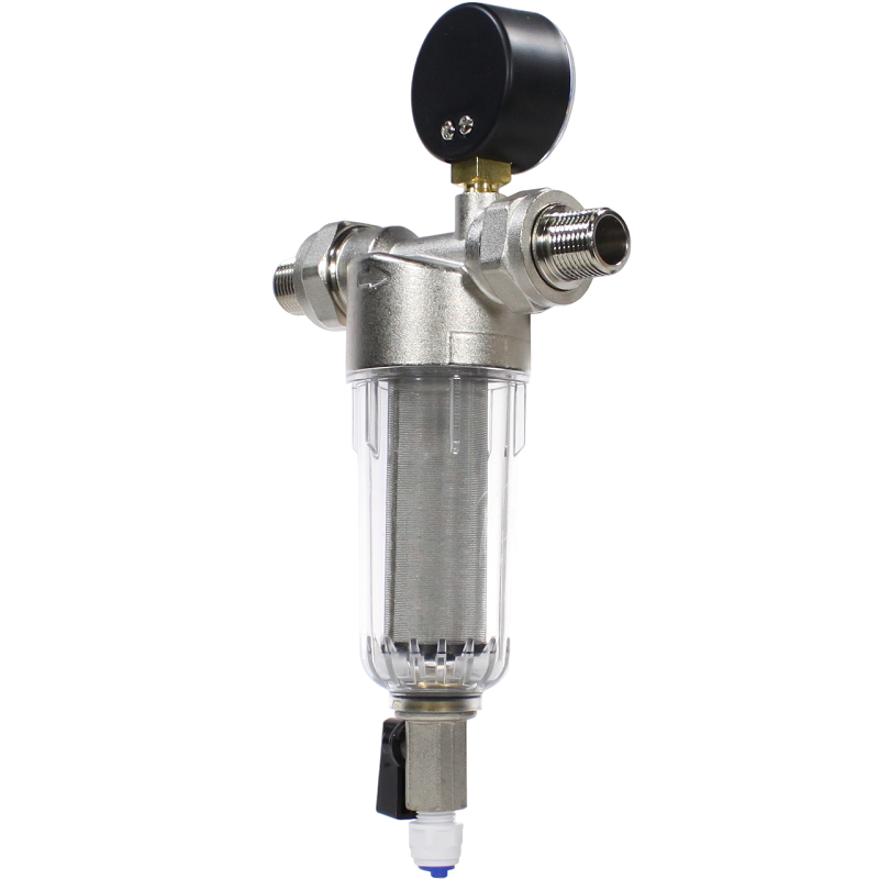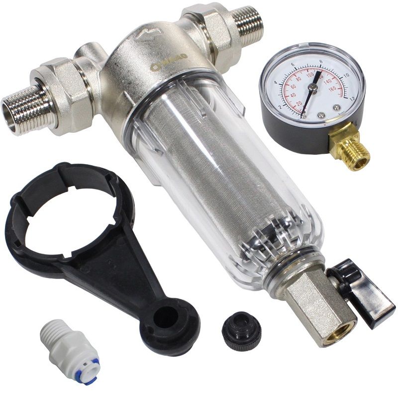 Фильтр для холодной воды предназначен для очистки от механических примесей питьевой и хозяйственной воды. Он защищает трубопроводы, а так же установленные на них арматуру и оборудование от функциональных нарушений и коррозии, вызываемых такими примесями, как песок, стружка, частицы ржавчины и др. Фильтры не предназначены для фильтрации растворителей, жиров, масел и других смазочных сред, а также водорастворимых веществ. Манометр, входящий в комплект фильтра, даёт возможность контролировать давление в системе. Для осуществления промывки необходимо открыть сливной кран, выпускающий скопившиеся на дне чаши фильтра примеси; подача воды при этом не прерывается. Удобство слежения за степенью загрязнения фильтра обеспечивается прозрачностью его корпуса.