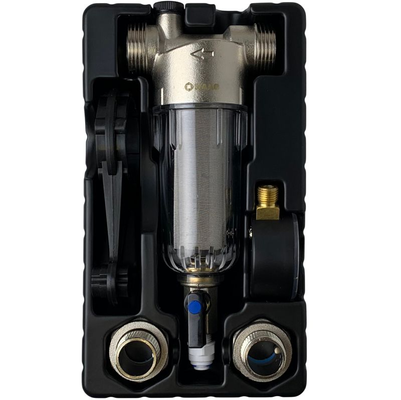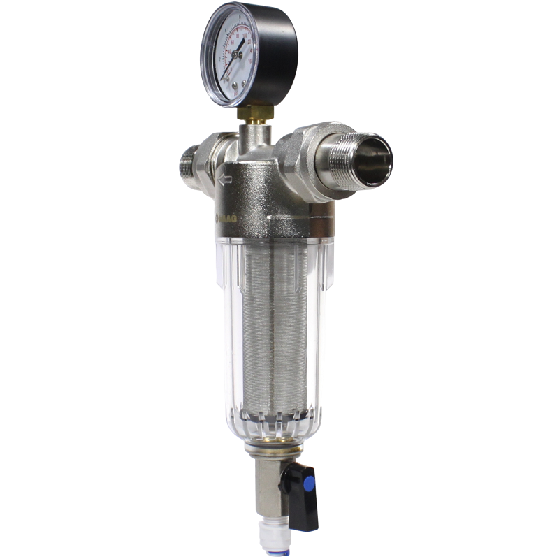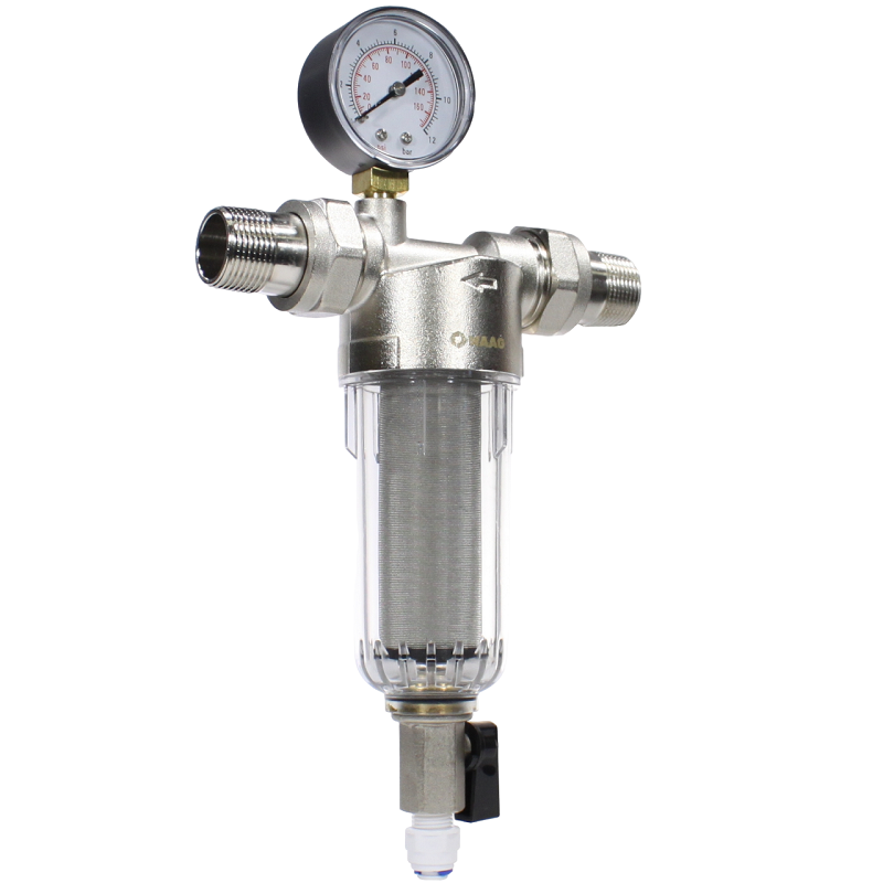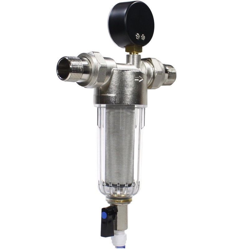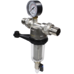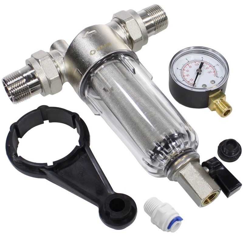 Фильтр для холодной воды предназначен для очистки от механических примесей питьевой и хозяйственной воды. Он защищает трубопроводы, а так же установленные на них арматуру и оборудование от функциональных нарушений и коррозии, вызываемых такими примесями, как песок, стружка, частицы ржавчины и др. Фильтры не предназначены для фильтрации растворителей, жиров, масел и других смазочных сред, а также водорастворимых веществ. Манометр, входящий в комплект фильтра, даёт возможность контролировать давление в системе. Для осуществления промывки необходимо открыть сливной кран, выпускающий скопившиеся на дне чаши фильтра примеси; подача воды при этом не прерывается. Удобство слежения за степенью загрязнения фильтра обеспечивается прозрачностью его корпуса.