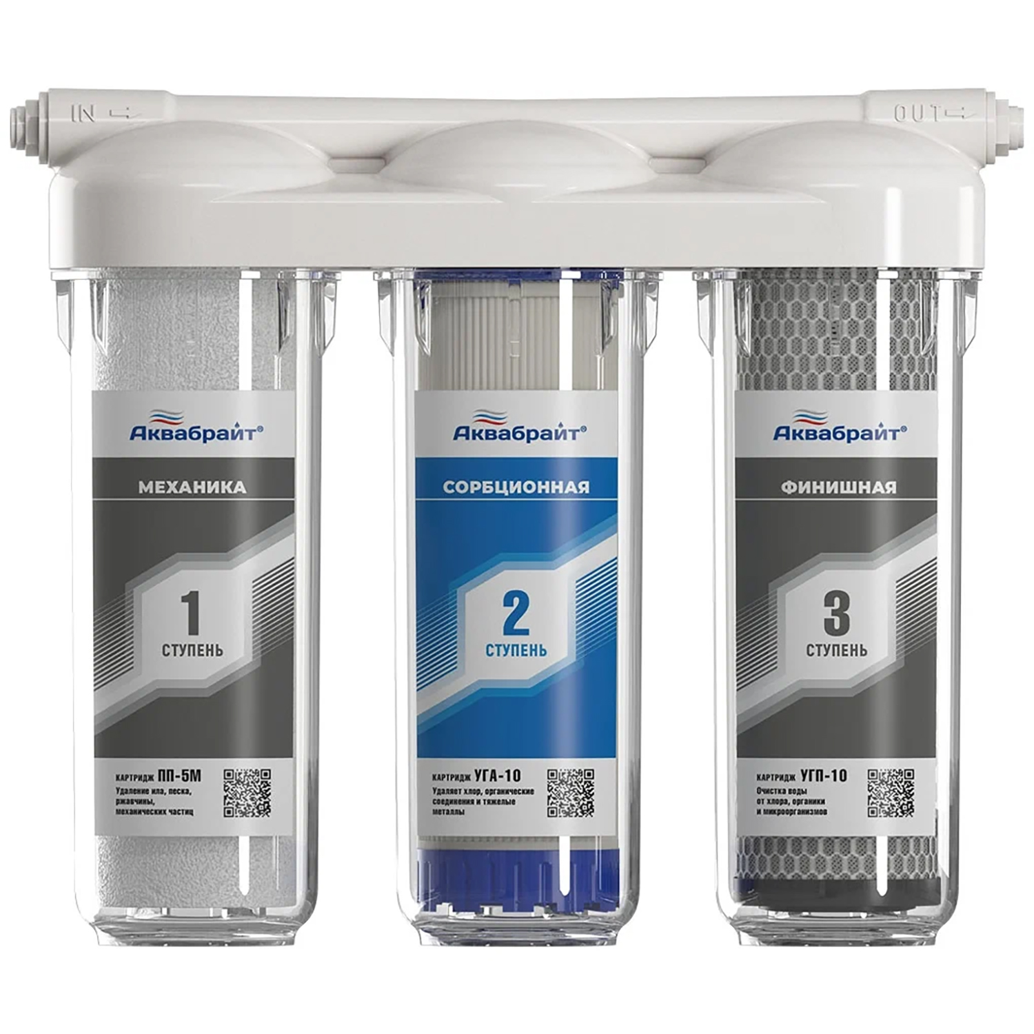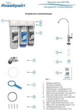 Система АКВАБРАЙТ АБФ-ТРИА укомплектована отдельным краном под кухонную мойку, удобным шаблоном для крепления системы на стену и комплектом для подкючения системы к водопроводу.