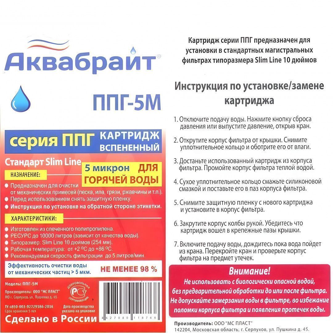 Ресурс до 10000 литров (зависит от качества исходной воды, но не более 6 месяцев).
