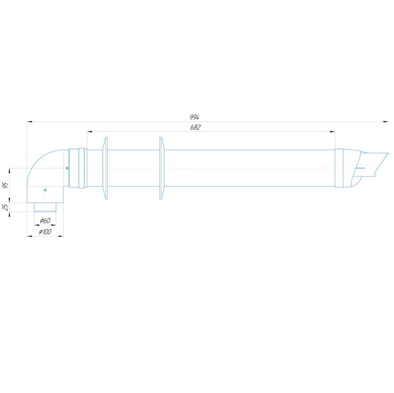 Универсальный комплект применяется для конденсационных газовых котлов с подключением 60/100. Дымоход создан с учетом климатических условий России, поэтому имеет наконечник антилед для минимизации наледи и стабильной работы газового котла.