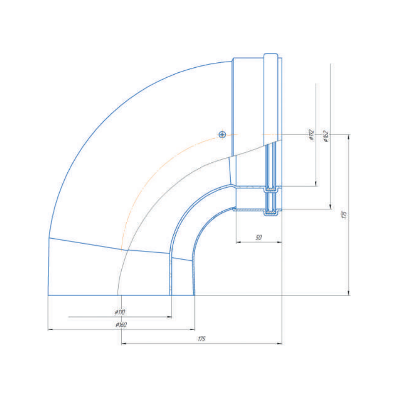 Отвод 90 110/160, WAAG, раструб-труба, алюминий/полимер WG.3230052