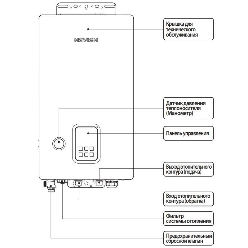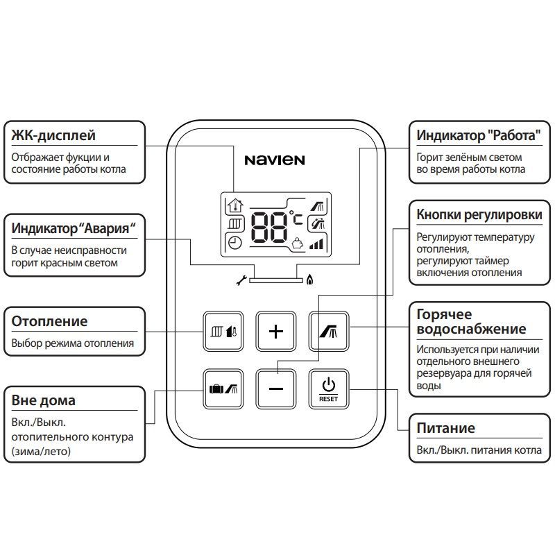 – Возможность удаленного управления с помощью фирменного пульта Navien NR-40D и приложения Navien SmartTOK (доп. опция);