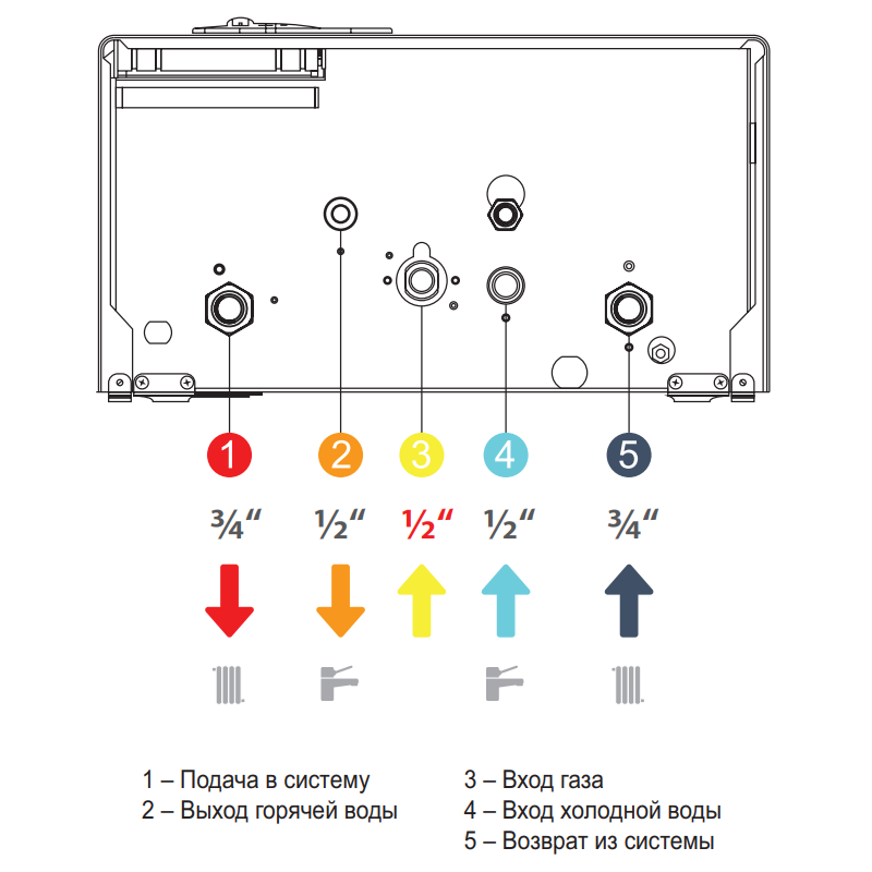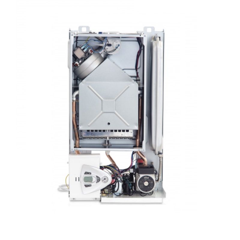 Классическая европейская конструкция, композитные гидравлические блоки, первичный теплообменник из меди, вторичный – из нержавеющей стали, автоматическая адаптация мощности котла к малым системам отопления.