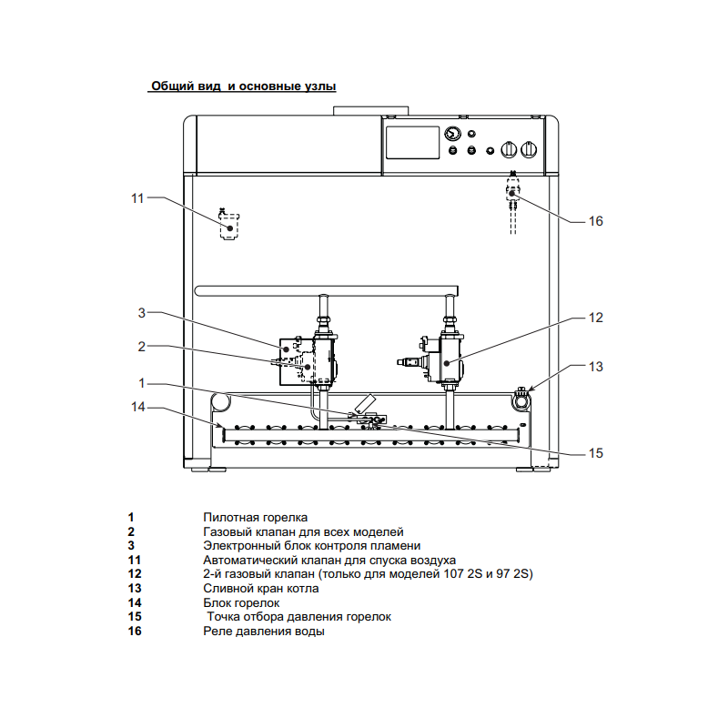 Предназначен для отопления и горячего водоснабжения (при использовании опционного бойлера косвенного нагрева) индивидуальных домов и коммерческих объектов отапливаемой площадью от 100 до 1000 м2. Теплообменник водогрейный, состоит из чугунных литых секций, соединение между которыми осуществляется: по воде – стальными ниппелями, по дыму – специальным герметиком; секции стянуты стальными шпильками. Атмосферная горелка из нержавеющей стали. Газовый клапан – двухступенчатый, с механической настройкой номинального и минимального давления газа на горелке. На котле установлены 1 (Pegasus 67 – 87 2S) или 2 (Pegasus 97 – 107 2S) газовых клапана, работающих параллельно. Электронный розжиг пилотной и основной горелок. Ионизационный контроль пламени. Релейная автоматика с аналоговой панелью управления котла – без возможности управления контуром ГВС.