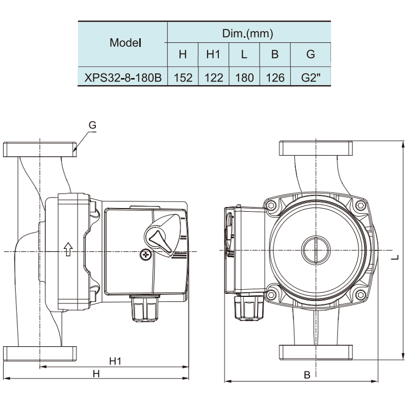 Насос циркуляционный SHIMGE XPS-B 32-8-180 (1х220В; 0,18кВт), с гайками, L180 10110100301