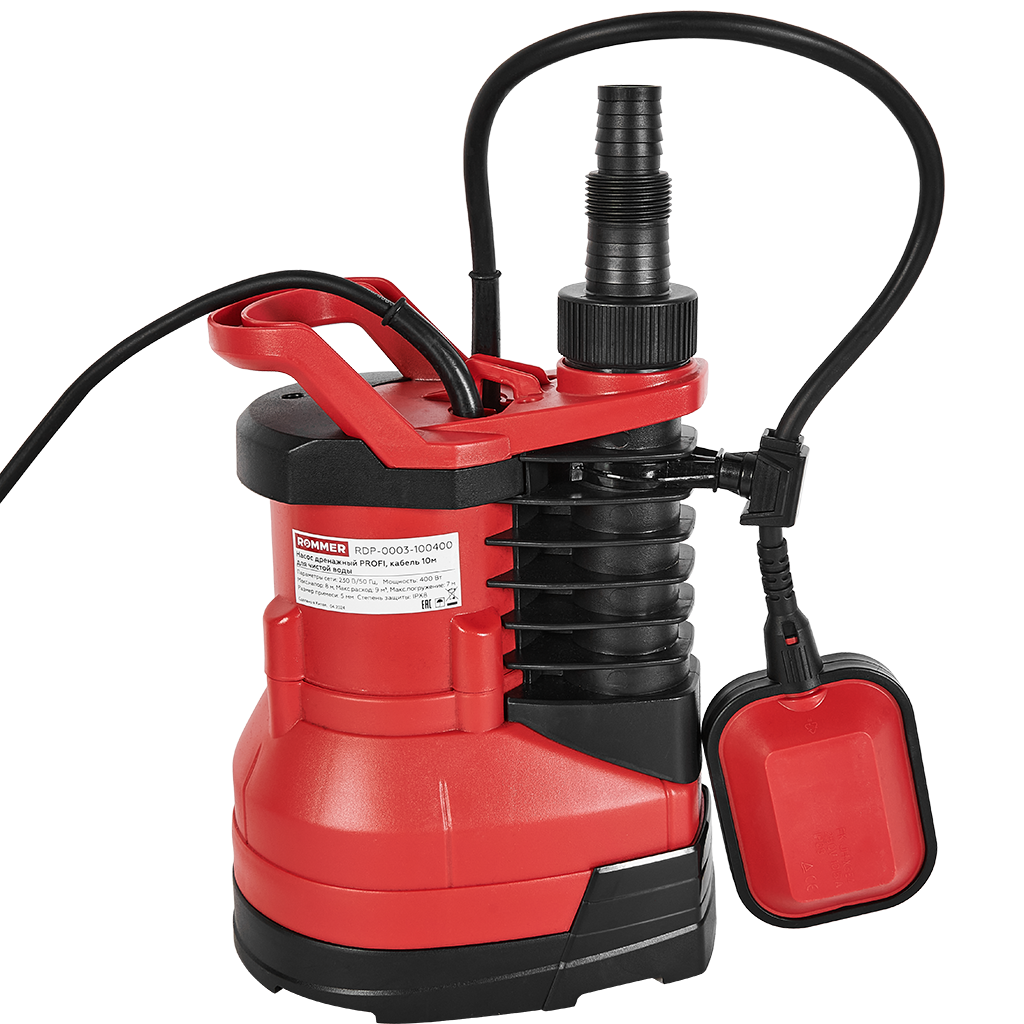ROMMER PROFI Насос дренажный, H-8м,Q-9м3/ч, кабель 10м, 400 Вт, для чистой воды RDP-0003-100400
