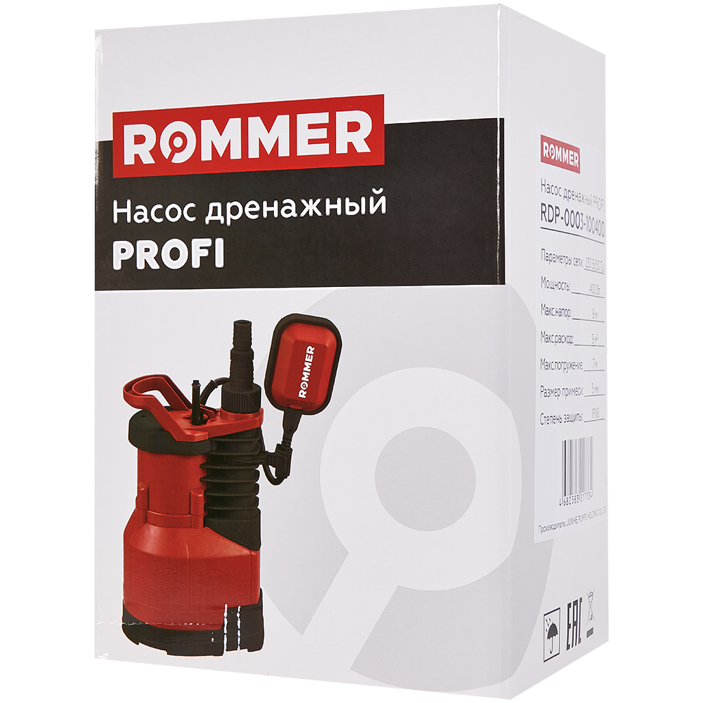 RDP-0003-100400 ROMMER PROFI Насос дренажный, H-8м,Q-9м3/ч, кабель 10м, 400 Вт, для чистой воды
