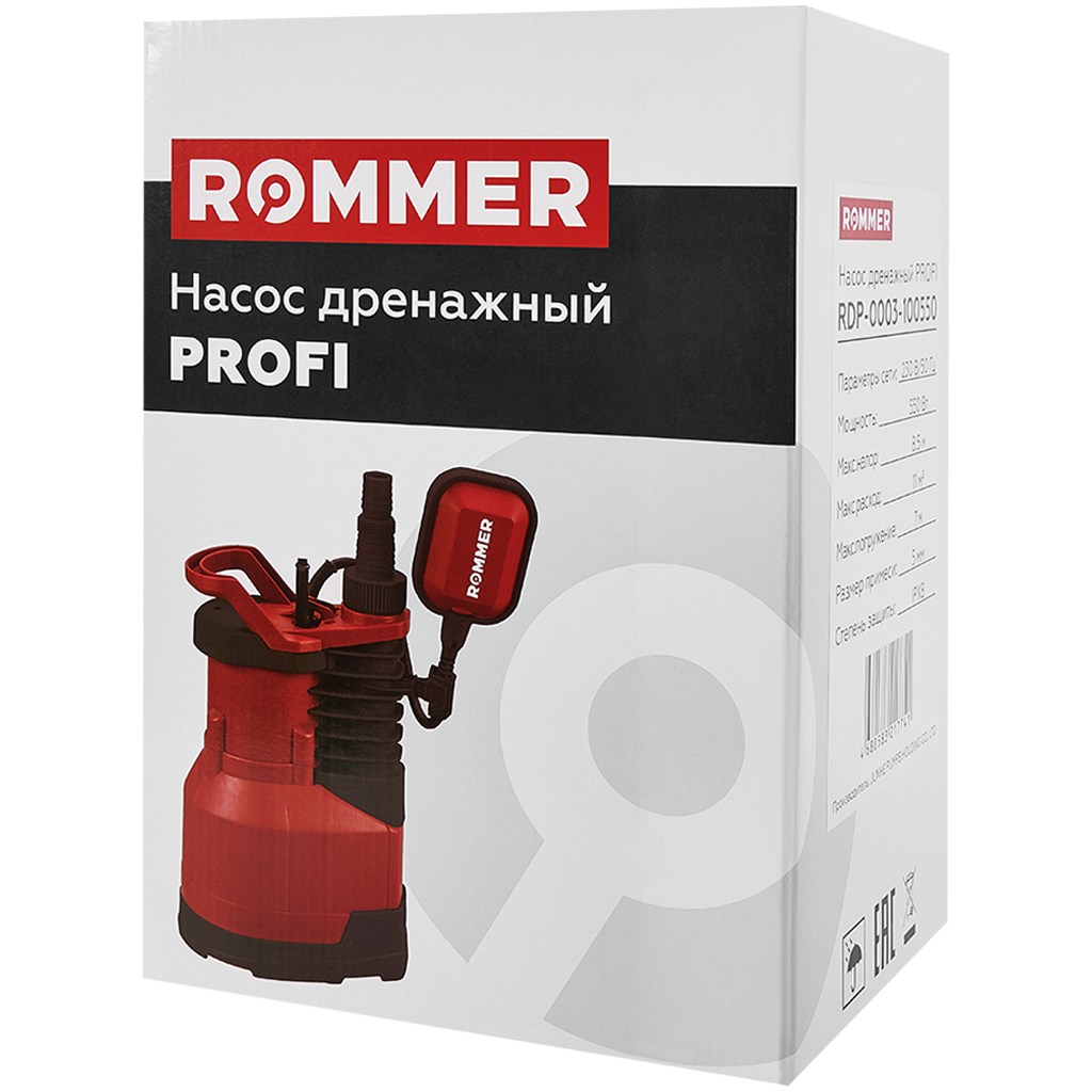 RDP-0003-100550 ROMMER PROFI Насос дренажный, H-8.5м,Q-11м3/ч, кабель 10м, 550 Вт, для чистой воды