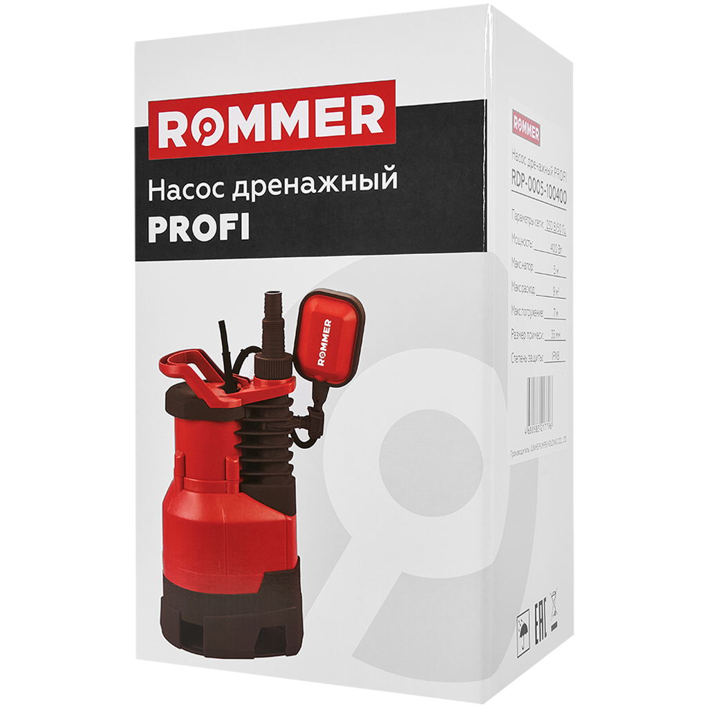 RDP-0005-100400 ROMMER PROFI Насос дренажный, H-5м,Q-9м3/ч, кабель 10м, 400 Вт, для грязной воды