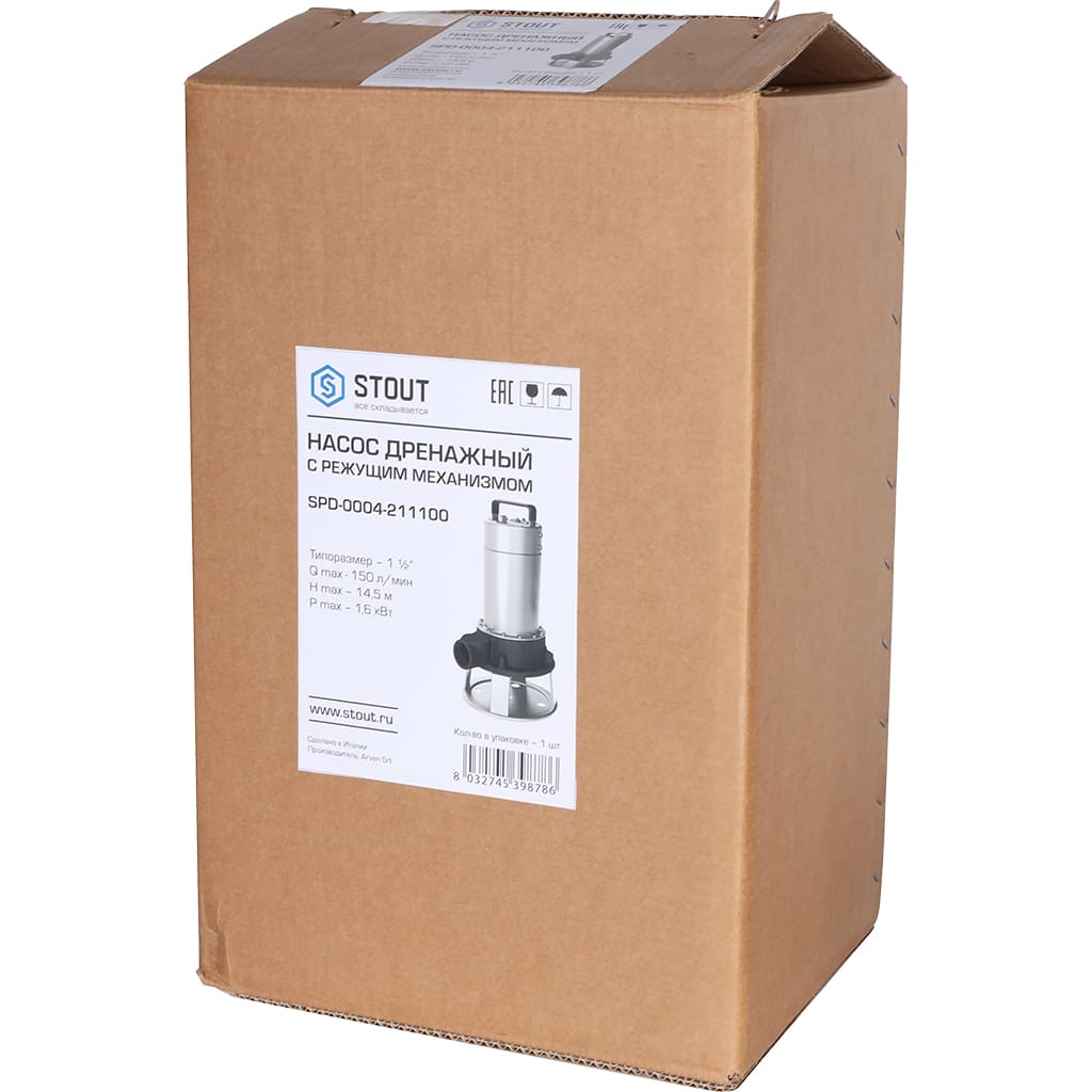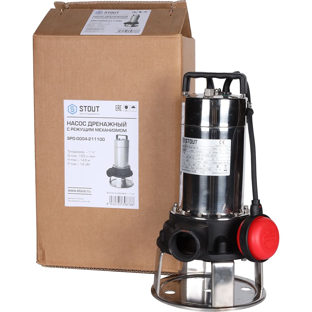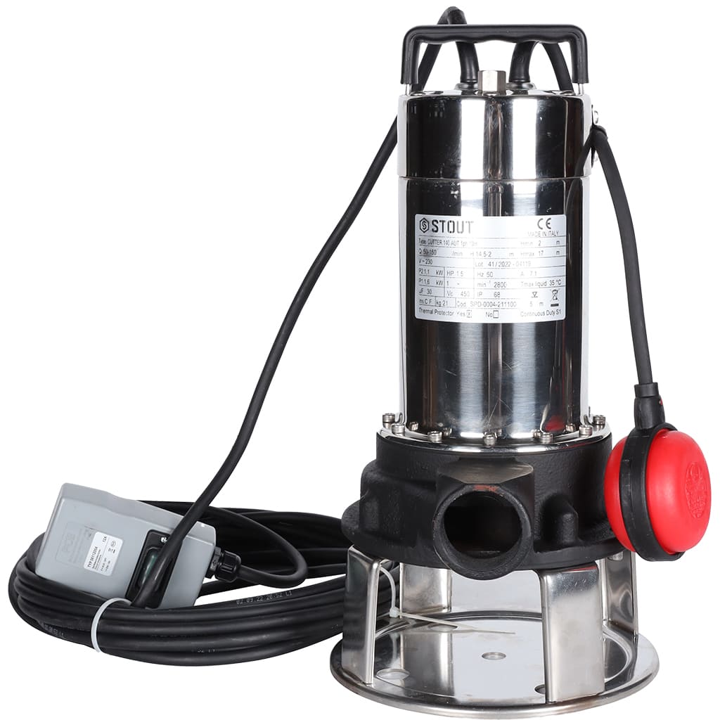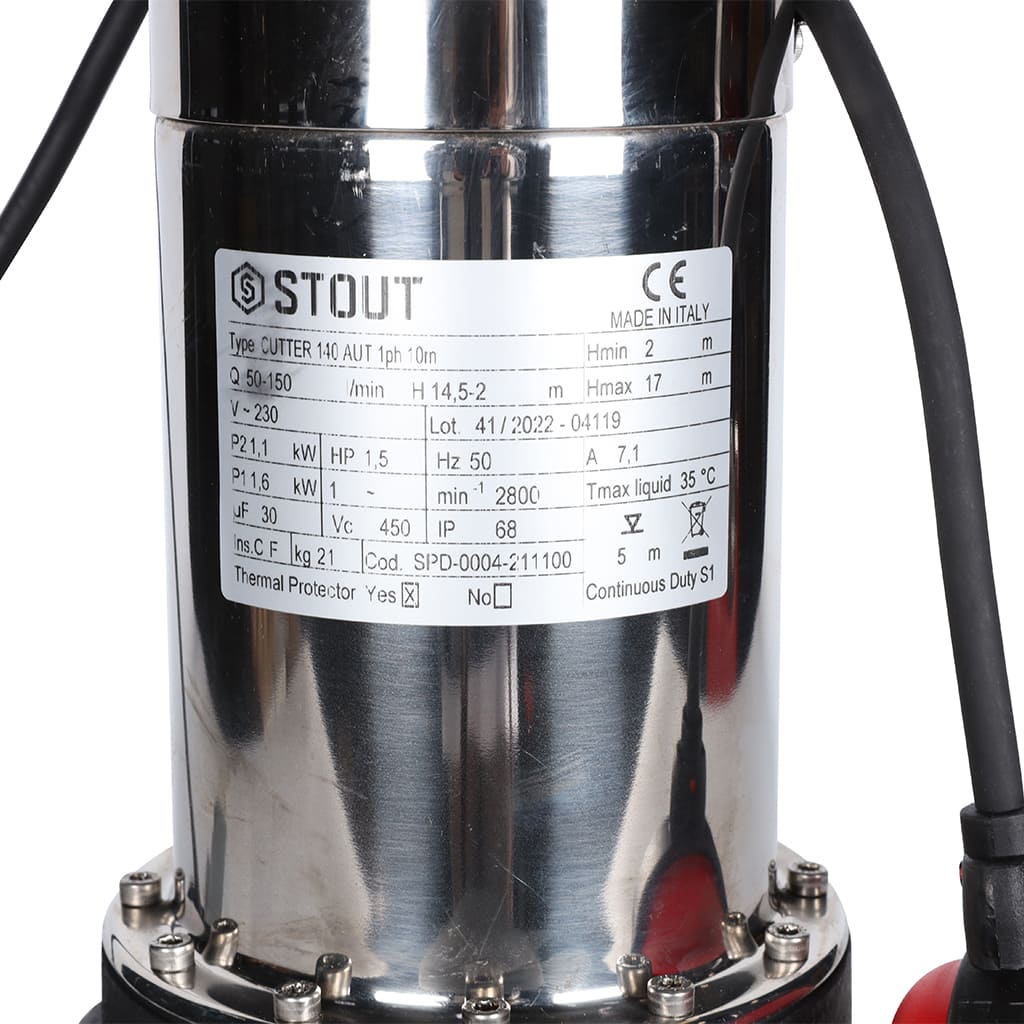SPD-0004-211100 STOUT Насос дренажный с режущим механизмом, с поплавком, корпус-чугун, кабель 10 м, 230V, Q=150 л/мин, H= 17 м