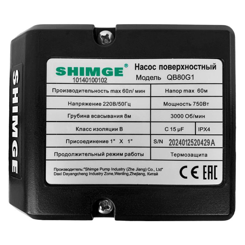 Насос повышения давления SHIMGE QB 80G1 (1х220В; 0,75кВт) 10140100102