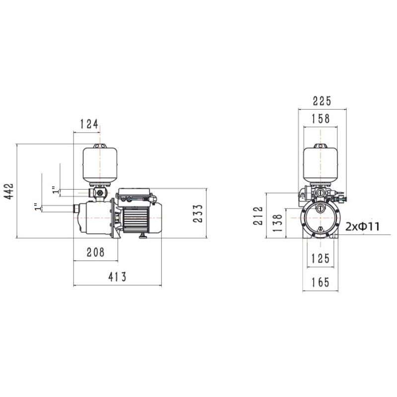 – комплектная установка для водоснабжения: установка SCALA1 включает в себя насос, мембранный напорный бак, объёмом 0,1 л, встроенную автоматику, обратный клапан на стороне нагнетания и кабель со штекером;