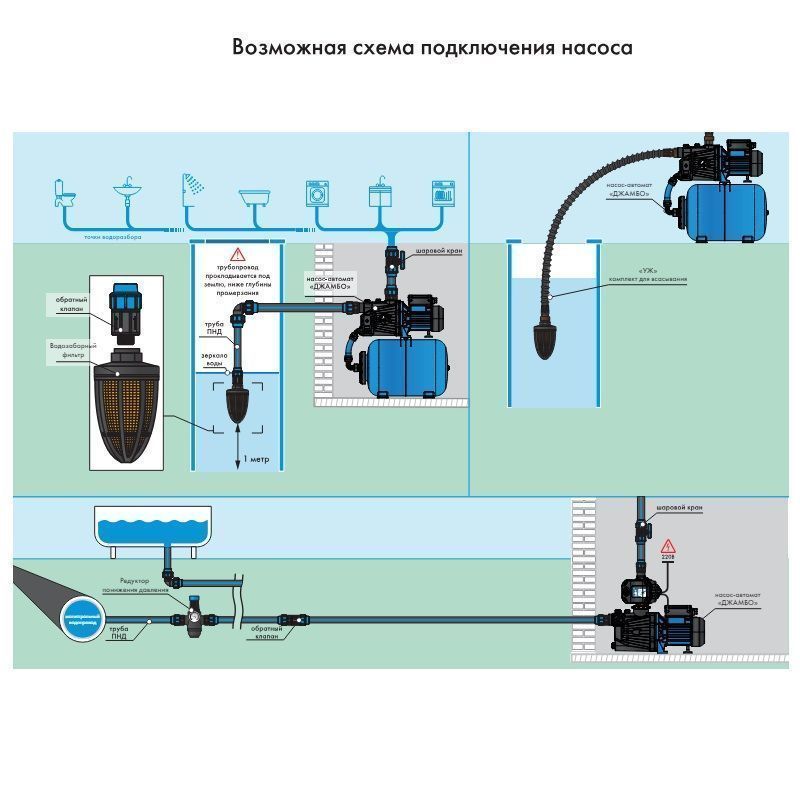 – функция самовсасывания: поднимает воду с глубины до 8 метров;