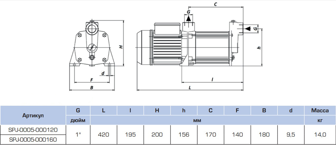 SPJ-0005-000120 STOUT Насос поверхностный многоступенчатый, раб.колеса-норил, Q-90л/мин, H-53м
