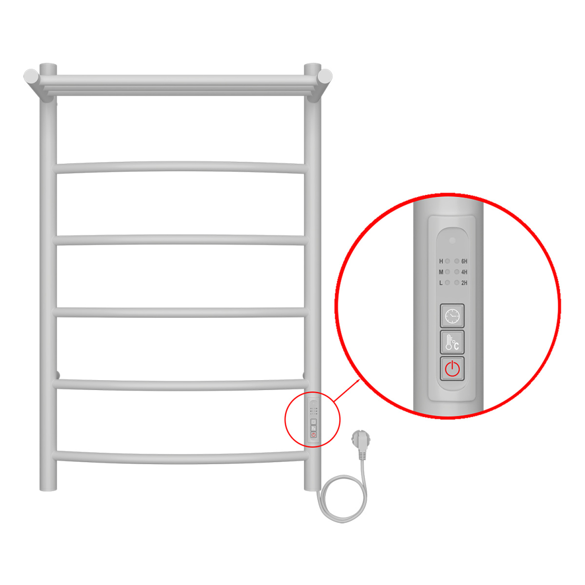 Полотенцесушитель электрический AZARIO VERONA 500/800 5 секций, с полкой, диммер справа, белый AZ04 AZ04858PW