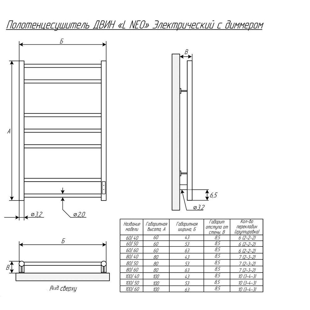Электрический полотенцесушитель ДВИН L с димером из серии “NEO”