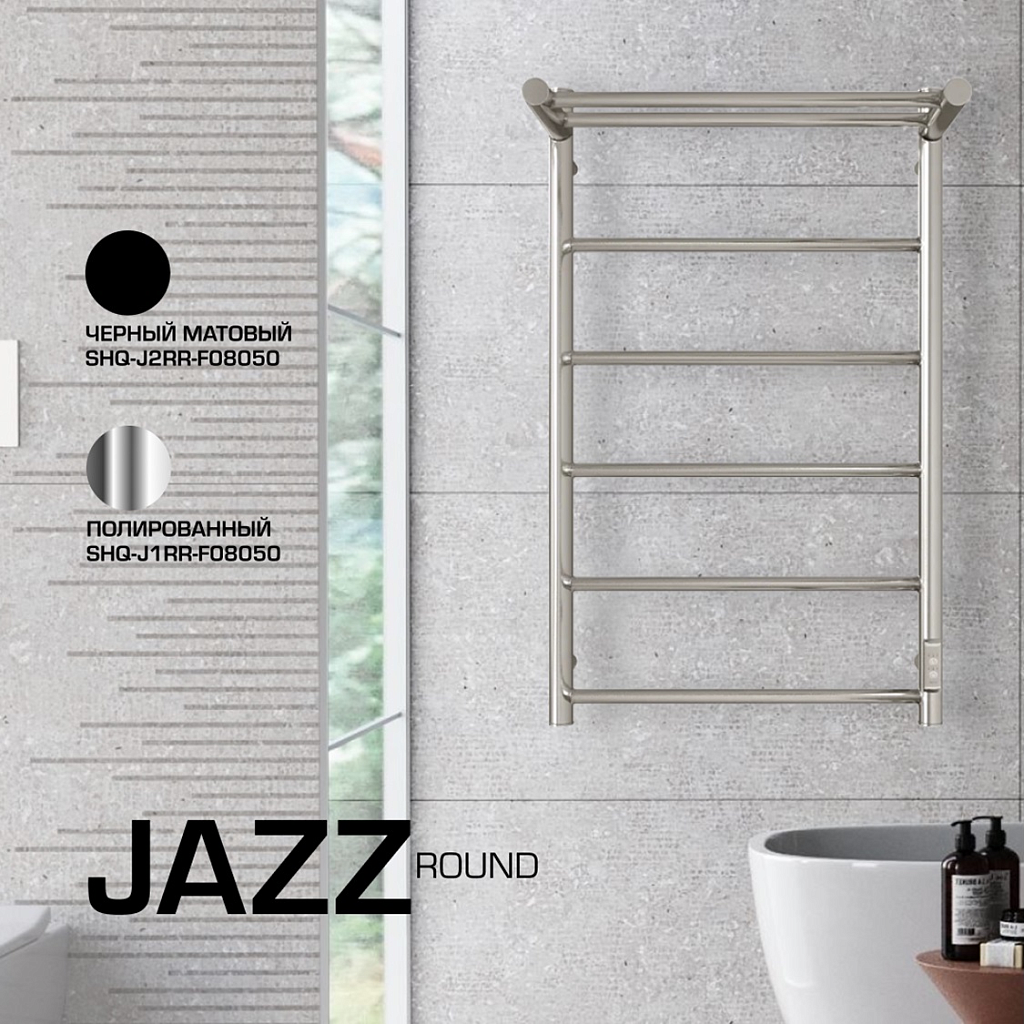 SHQ-J2RR-F08050 STOUT полотенцесушитель электрический JAZZ round 80*50 Черный матовый с полкой