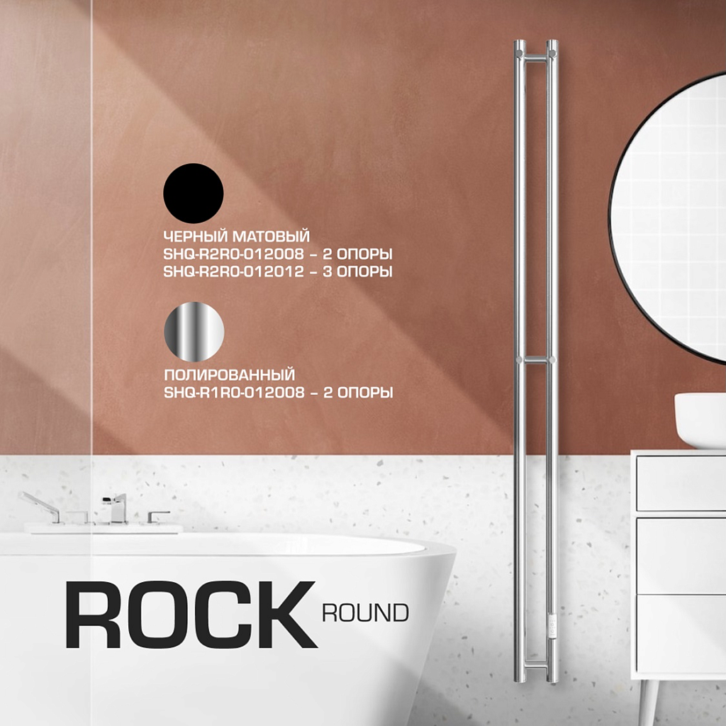 SHQ-R2R0-012012 STOUT полотенцесушитель электрический ROCK round 120*12 Черный матовый 3 опоры